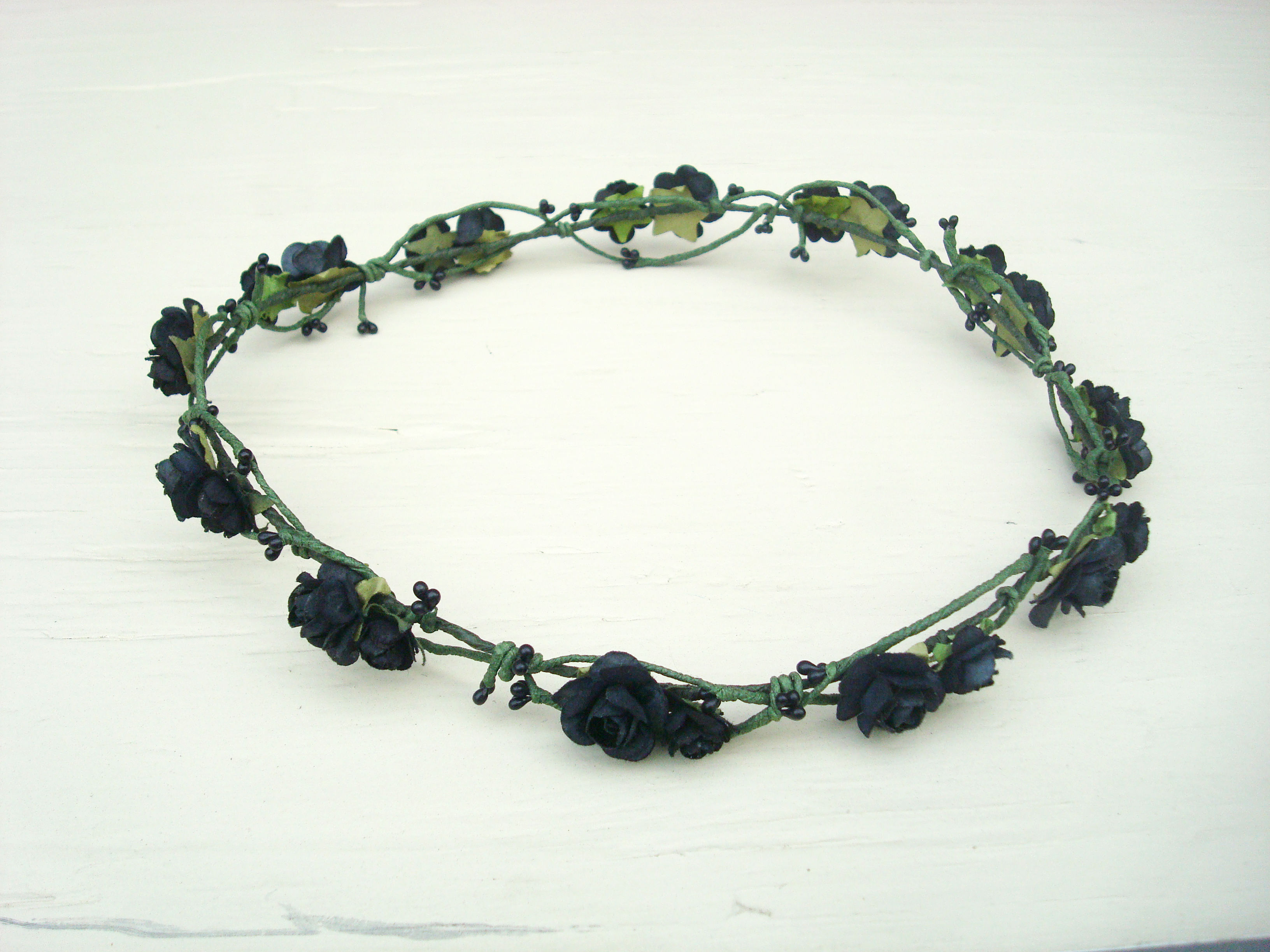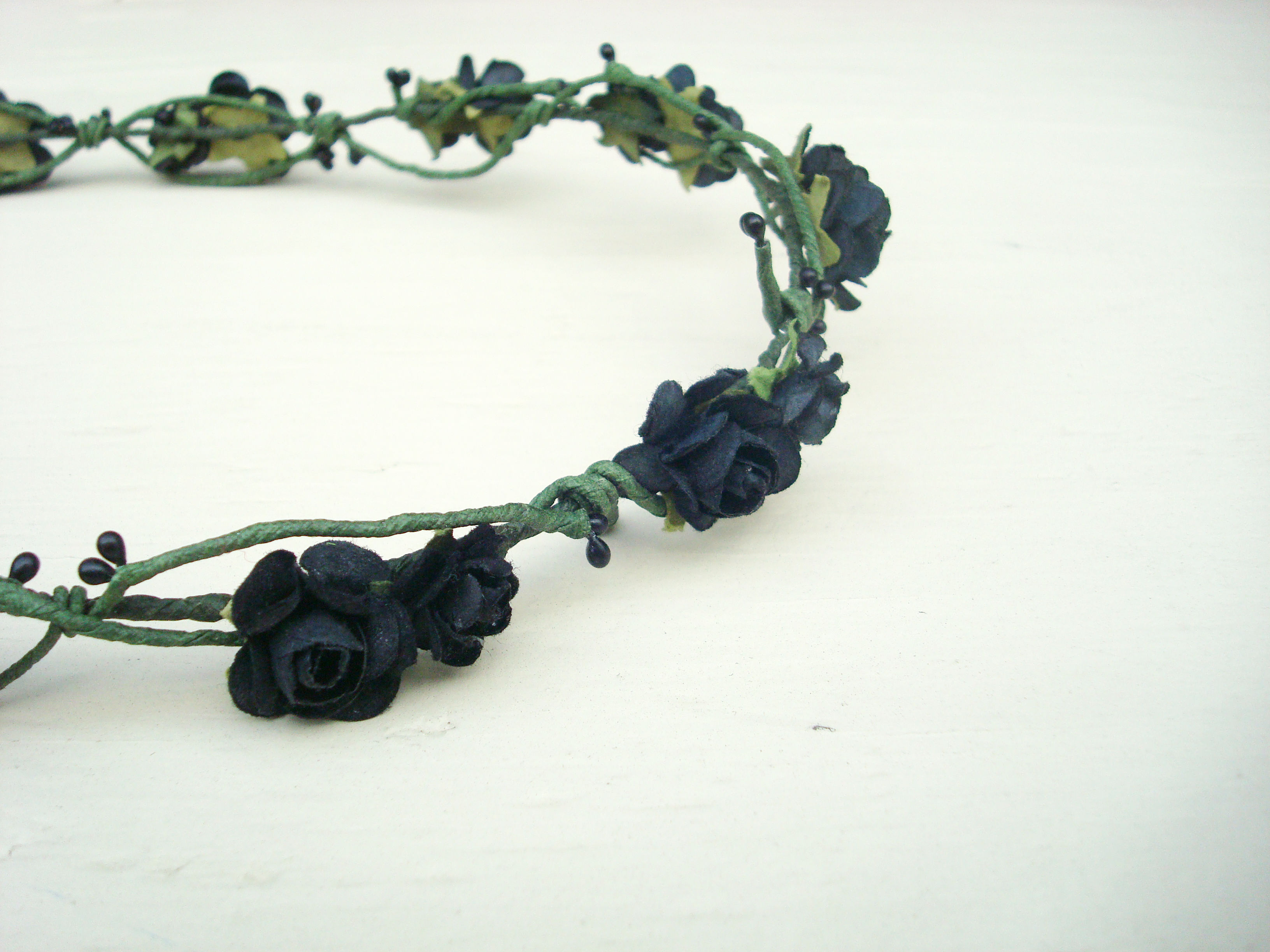 Handmade floral crown made with black colored rosettes & black berries,wreaths, leaves, vines & lovely finish detailing♡