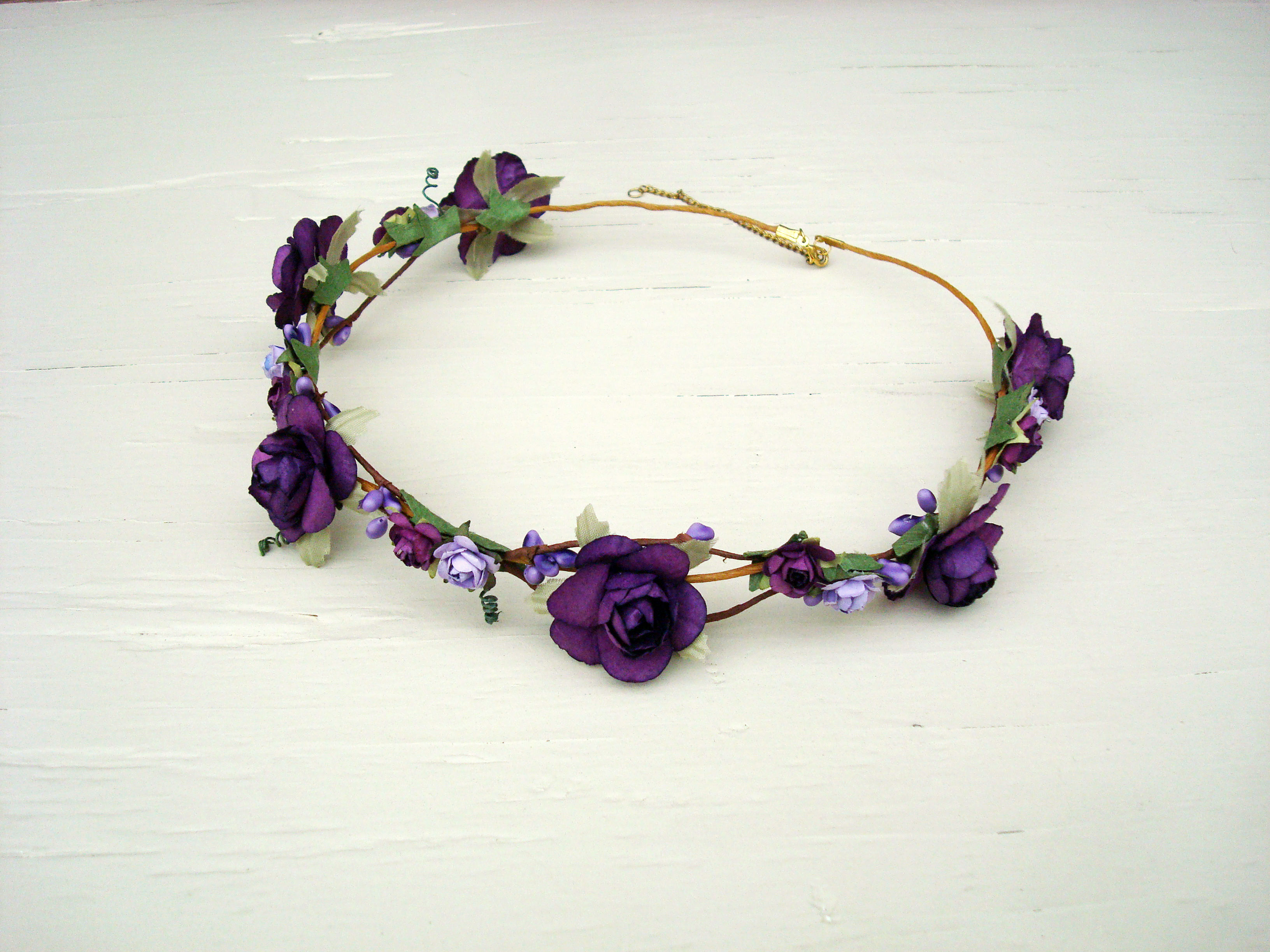Sweet handmade floral crown made with purple & lilac colored rosettes, berries, wreaths, leaves, vines & lovely finish detailing♡
