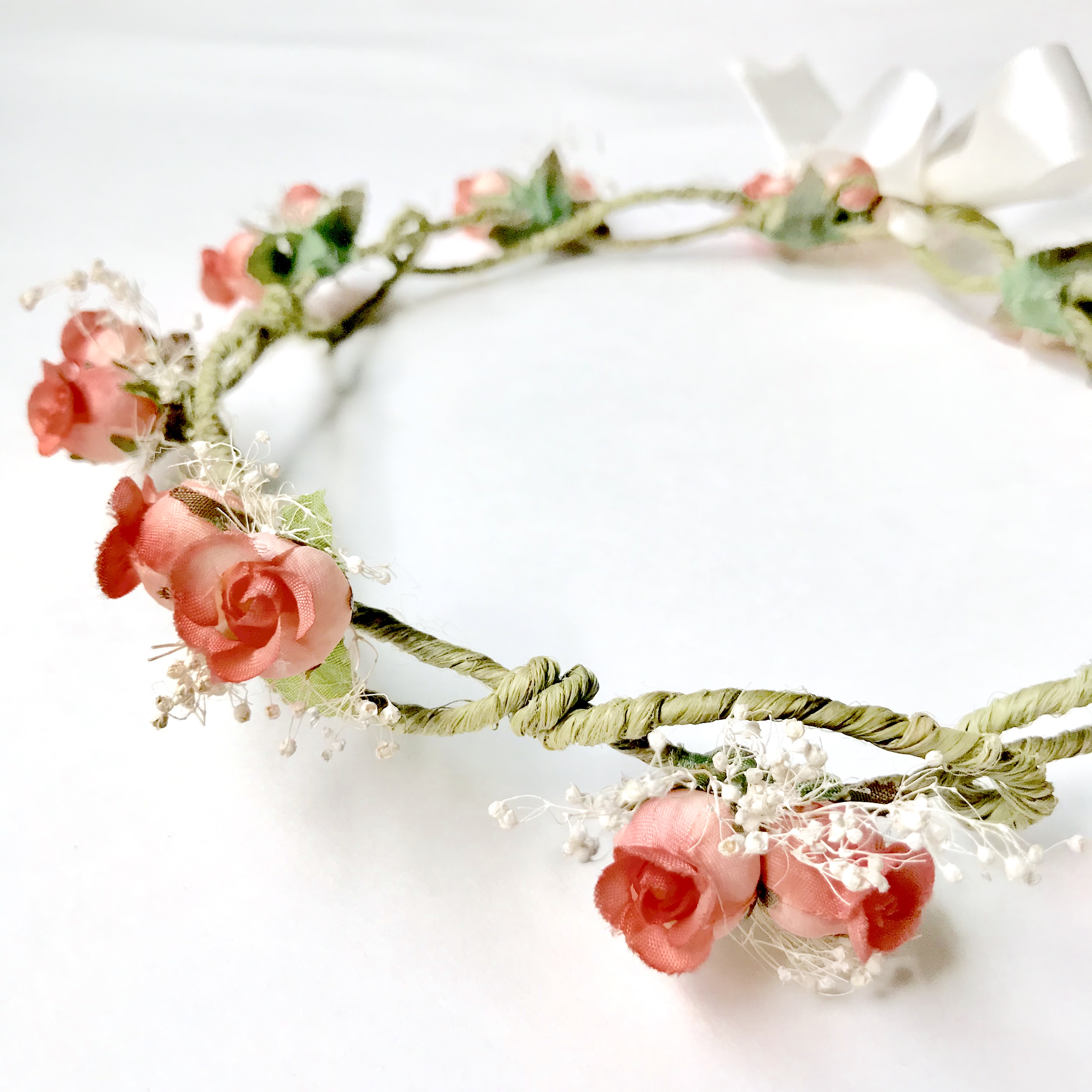 Handmade floral crown made with ballet pink colored rosette belles, wreaths, leaves, vines & real Baby's Breath finish detailing♡