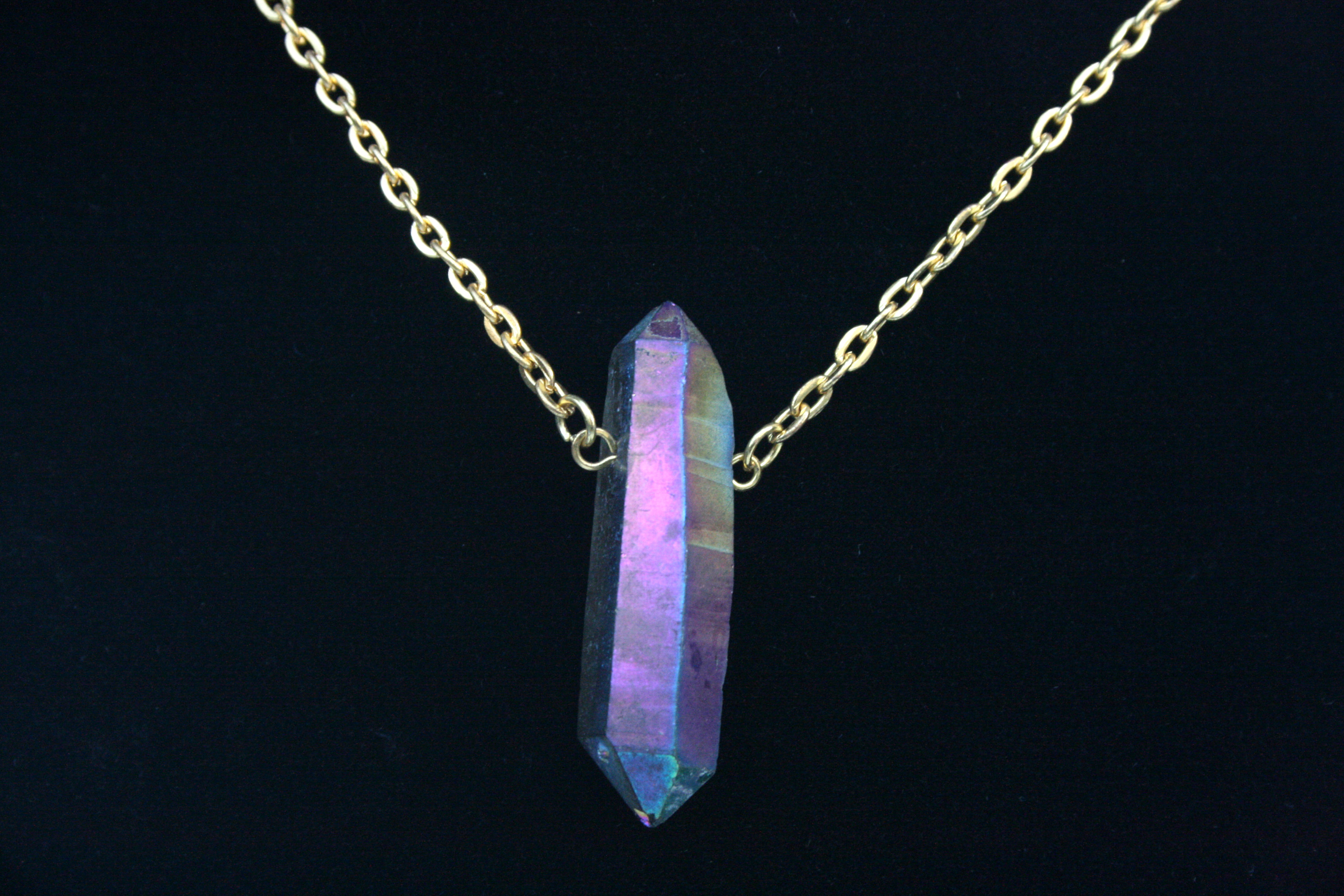 Handmade crystal necklace made with a Titanium Aura Point♡