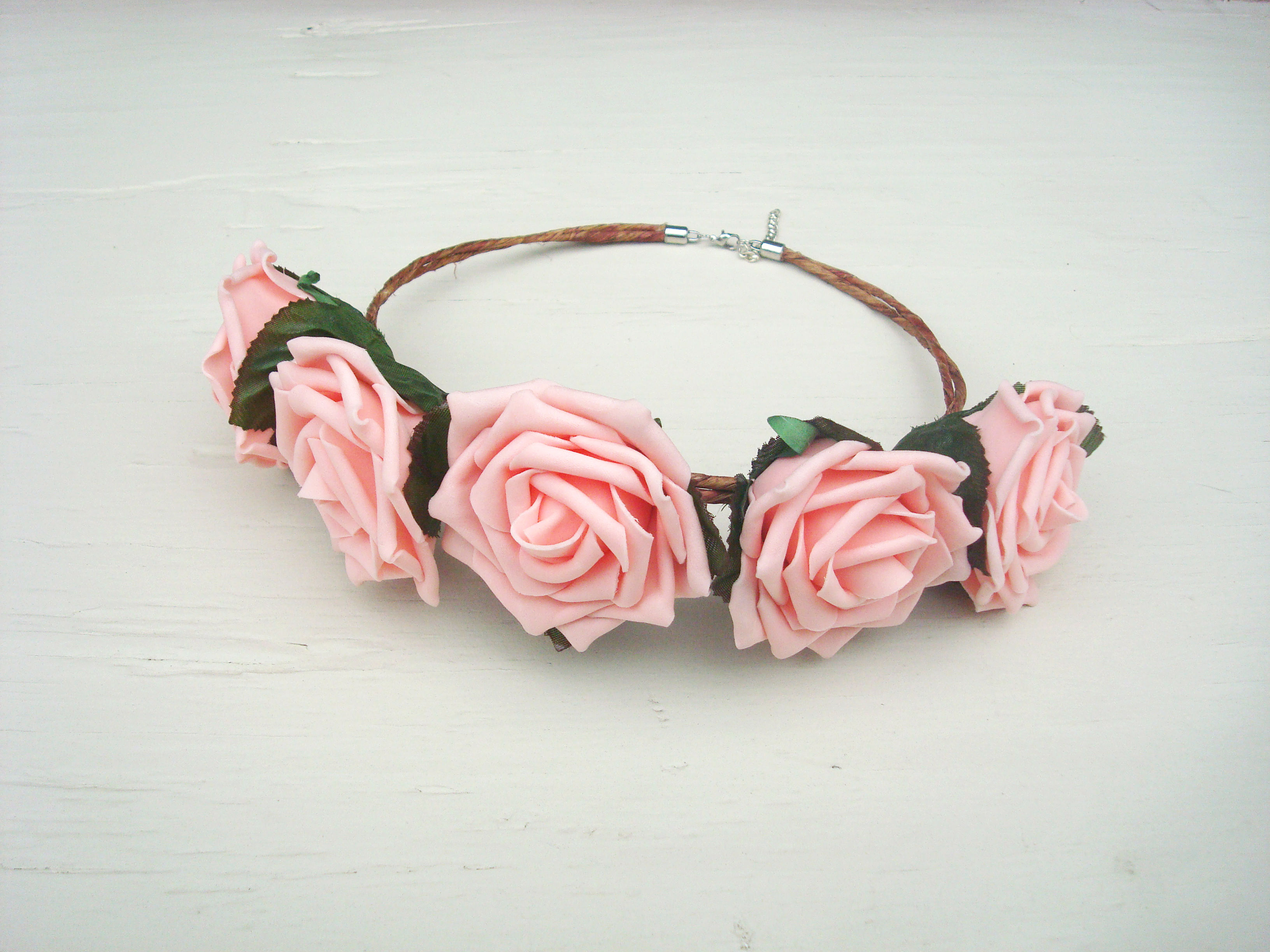 Handmade floral garland made with peachy pink colored roses, wreaths, leaves, vines & lovely finish detailing♡
