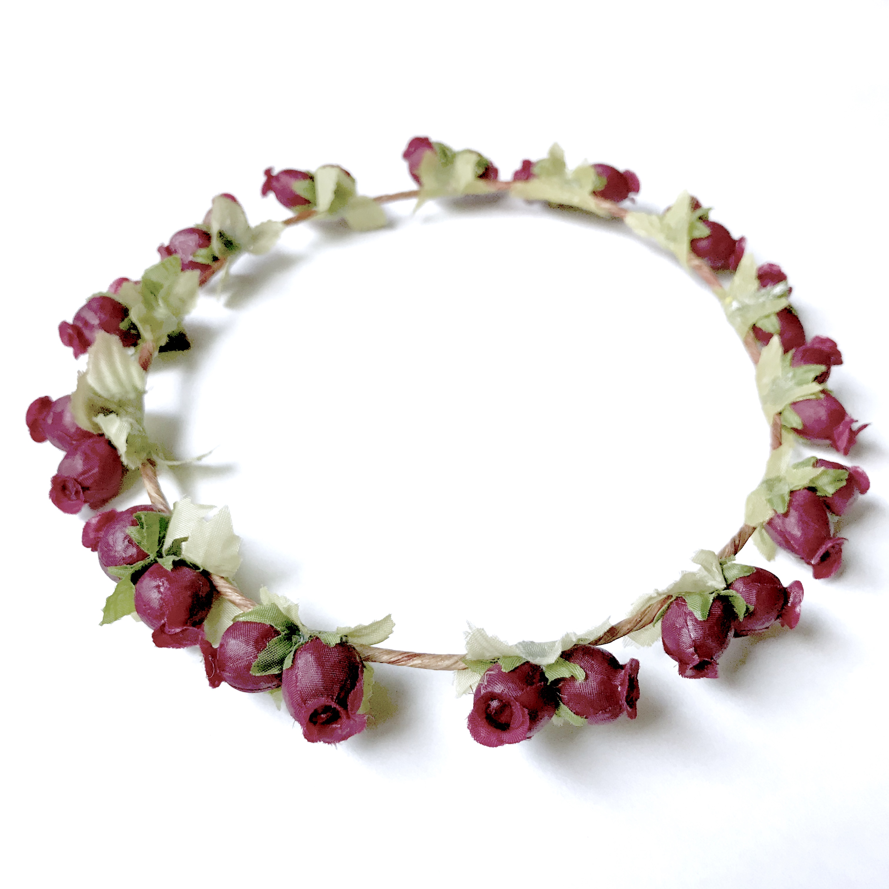Handmade floral crown made with burgundy colored silk rosette belles, wreaths, leaves & lovely finish detailing♡