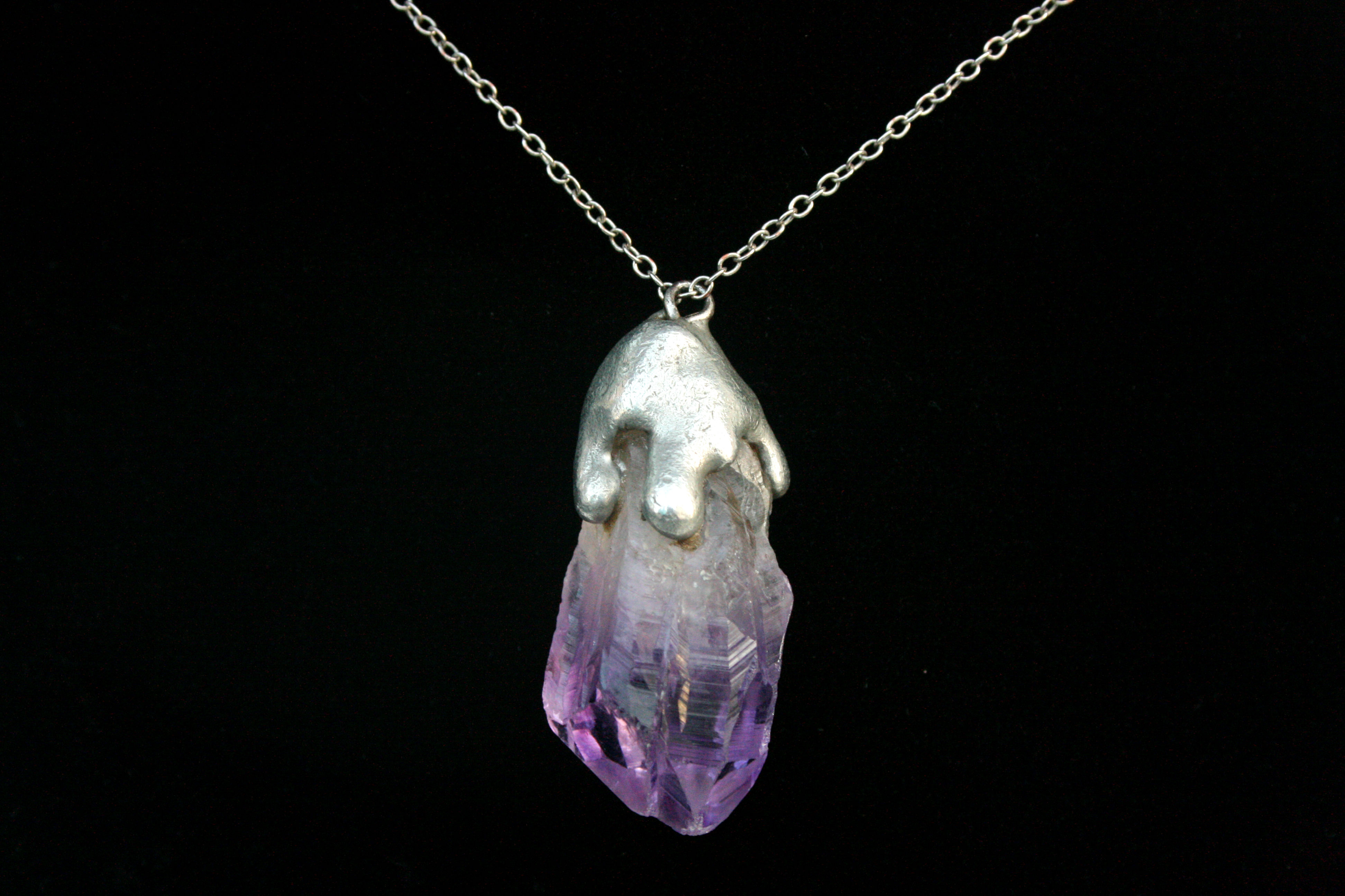Handmade crystal necklace made with an Amethyst Point & adorn with metal drip detailing♡